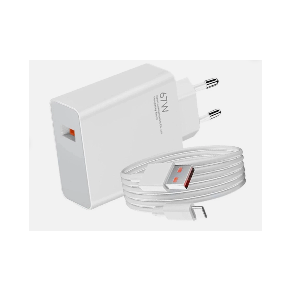Cargador 67W 3.0QC Carga Rápida con Cable Tipo-C para Xiaomi / Redmi / POCO (PREMIUM)